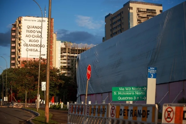 crédito metrópoles -> www.metropoles.com/distrito-federal/torre-palace-veja-vias-que-foram-interditadas-para-implosao-de-hotel Bloqueios começaram às 6h deste domingo (25/1) e afetam N1 e a ligação entre W3 Norte e a