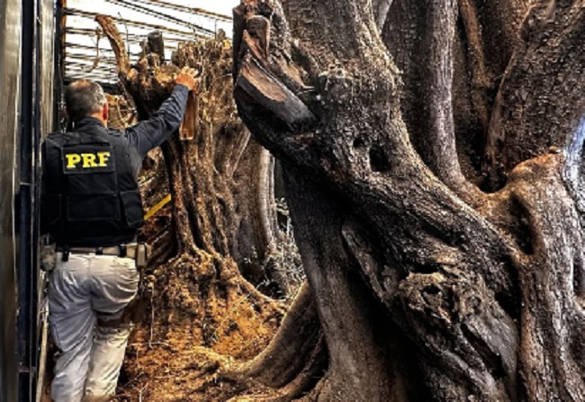 Produtora de azeitonas, a oliveira centenária é procurada por condomínios de alto padrão para compor a paisagem e arquitetura do local. Esta é a quarta apreensão realizada pela PRF deste tipo de mercadoria no ano.