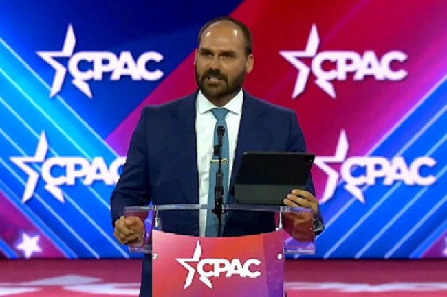 O filho de Jair Bolsonaro é acusado de tentar intimidar o STF durante julgamento da Ação Penal nº 2.668, que julgou o ex-presidente e mais sete aliados. Essas ações envolveram retaliações dos Estados Unidos contra o Brasil, como o tarifaço, além de restrições impostas a ministros do Supremo, como o cancelamento de vistos e a aplicação da Lei Magnitsky.
